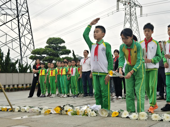 随后,进入敬献花圈环节。钟村街关工委、钟村中心小学、钟村锦绣小学、钟村四村党总支部相关领导首先上前,向烈士纪念碑敬献鲜花。紧接着,党员代表与少先队员代表依次上前敬献鲜花,寄托对革命先烈的无限哀思与崇高敬意。